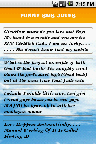You can enjoy the systematic view of the Jokes SMS. Its also great Funny Jokes SMS Collections.