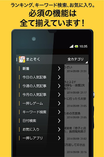 2ちゃんねるのまとめサイトビューア まとそくは、2ちゃんねるのまとめブログの幅広いジャンルの中から、おすすめブログを厳選した、2ちゃんねるのリーダーアプリです。