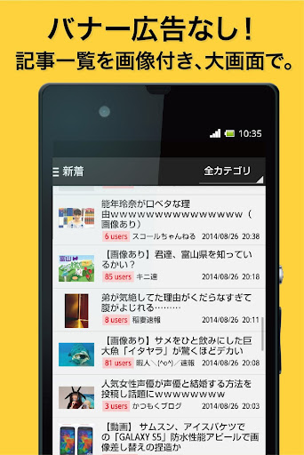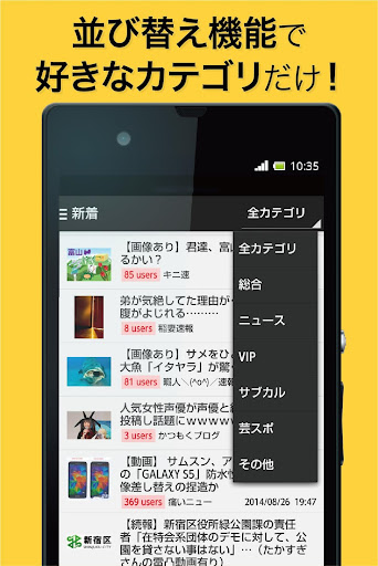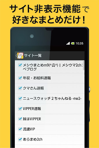 ニュース、VIPなどのカテゴリ別に読みたい記事を選択出来るので、興味のある2ちゃんねるのまとめ記事だけを閲覧できます。