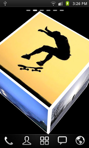 3D Cube live Wallpaper allows user to select the images from Gallery to set on the faces of cube, which moves around the screen randomly.