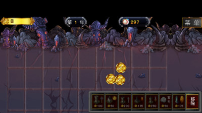 本游戏是休闲策略类游戏,采用了许多3D效果设计,华丽的界面给人耳目一新的感觉。游戏开始,首先点击收集三个金币,建造房子才会有更多的收入来建造防塔和发射塔,每一块地只能建一个建筑物。如果妖兽来袭,建造石头阵或发射塔在妖兽前进的路上行防御和攻击,还可以建造魔镜使冷兵器的威力加倍。游戏背景看不到的地方可以拖到你想要的位置。游戏以五分钟为一年。游戏建筑栏从左边数起:1.普通发射塔可以单发射。2.建造房子能够挣更多金币。3.箭塔能够双发。4.火焰塔能够发射火焰把妖兽吓慢。5.连射塔能够三发。6.石头能阻塞妖兽前进。7.魔镜能把在它穿过的冷兵器加倍威力。8.移除不需要的建筑。
