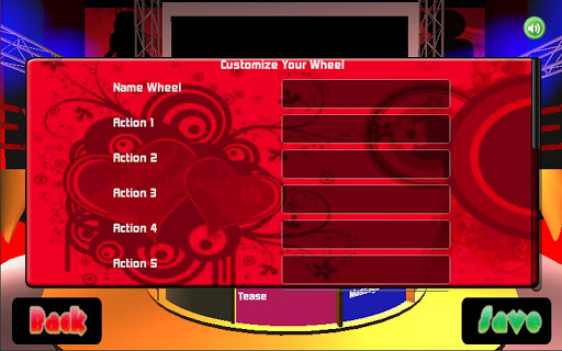這個可愛的應用程序是免費版和完整版的成本€1.50,在這種情況下,你可以使遊戲更加有趣和罪惡的,如果你願意的,因為不同的是免費版本,你可以自定義輪插入的行動您的選擇,您可以自定義遊戲改編你的一群朋友,您的口味或成一行。圖形應用程序是好是車輪效果很好,那麼,你可以體驗到它,並嘗試以動畫的晚上,傷心這個遊戲簡單但迷人的。
