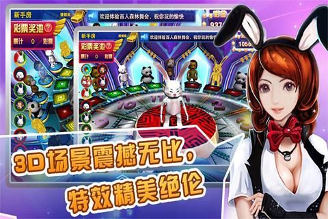 刺激电玩游戏《森林舞会》3D高清震撼发布!游戏为原班人马打造 把实体机台一比一完美移植到安卓 平台采用最新3D引擎制作 炫丽的画面配上激昂的音效 重新震撼您的视觉感官。操作简单,界面简洁清新,百人同局,非常过瘾。即可单机,也可以喊上好友一起玩,值得体验。 √安卓平台上独一无二的联网加单机电玩森林舞会游戏,百人在线同局对战,美女帅哥同场竞技,各种热闹,各种刺激。 √100%完美移植街机,3D场景震撼无比,特效精美绝伦!彩金,大三元,大四喜,送灯节目 最高可送11灯哦!√在电玩城森林舞会这个游戏,博的不仅仅是运气,更是分析数据,选择对策,击败机器,才能令您常胜。√游戏特色:独创单局排名,彰显你的实力和运气! √与众不同的电玩游戏,给您独一无二的娱乐享受!