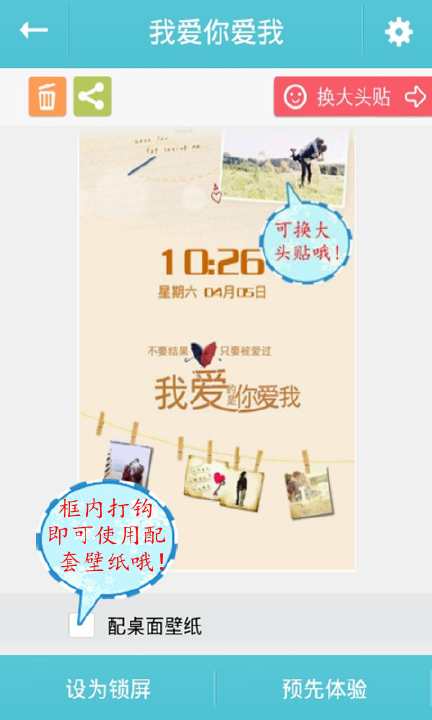 我爱你爱我浪漫锁屏是目前很受用户欢迎的一款软件哦!更是一键设为锁屏的利器,只需轻轻一点设为锁屏,手机顷刻变身花样美机哦!纯手工编译制作而成,画面最精致,实用最简单,电量最节省!