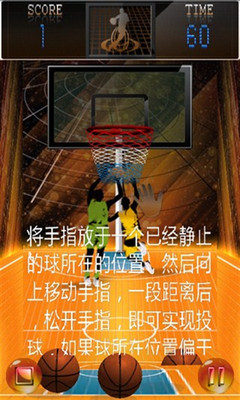 手机也能玩投篮?没错,不用去游戏娱乐场了,3D篮球达人是一款篮球机游戏,跟传统篮球机游戏一样,你可以用手指来进行投篮动作,在一定的时间内尽可能多的投篮得分,超过一定的分数即可进入下一关,快来运动你的手指,挑战篮球达人的称号吧。