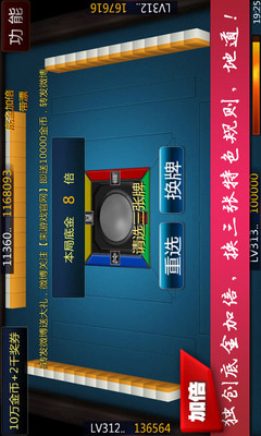 游戏规则:血流成河起源于四川、宜昌地区,除一般番型外,特色玩法如定缺、刮风下雨、血流成河等,富有别致趣味性。来游戏“3D血流成河”是一款极具创新的在线棋牌游戏,游戏节奏快、刺激感强,再配合底金加倍翻番等游戏设定,带给玩家极强的游戏快感和成就感。除了传统的吃、碰、杠等和牌规则外,还加入了底金加倍等特色规则,最大加倍可以达到一万翻以上,体验瞬间将对手打飞的游戏快感!