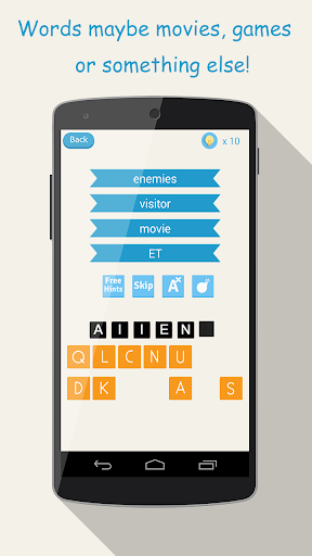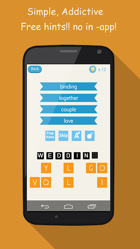 The gameplay is simple; Solve the words from clues given and win! You have hints to help you and you can get further more FREE hints! 4 clues 1 word contains no in-app purchases! Everything is Free! So play and Enjoy!