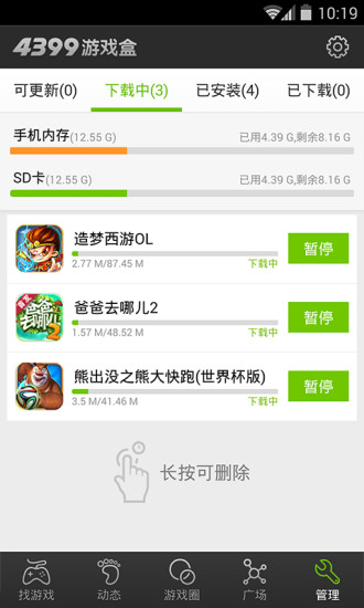 4399手机游戏”更名为“4399游戏盒”。4399官方权威打造!史上最佳的移动游和游戏内容推荐平台!是款专注于精品手机游戏的分享平台,集游戏推荐、资讯、社交、互动、管理于一体。具有用户免费体验、好友互动PK、分享游戏状态、展示个人风采等诸多特点,您可随时随地一键安装;通过开发者平台为您提供超过10万款海量游戏,全部游戏经由资深玩家强力推荐。让玩家畅游其中,百玩不厌!
