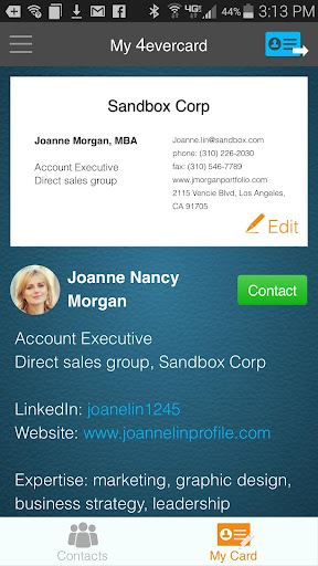 Your contacts will automatically see the updated version on their 4evercard apps every time you update your card, and vice versa, through cloud-based syncing.