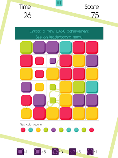 - Rebentar todos os quadrados de uma cor escolhida até ao final da ronda;