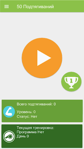 - быстрая статистика (ваш текущий средний уровень подтягиваний, текущая программа, статус и медали)