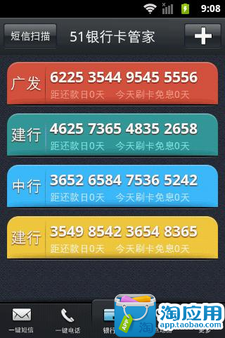 基于android平台的51银行卡保险箱,带给您全新的理卡体验,将卡片信息,功能,便捷服务,存储网点,ATM机位置和更多功能整合到一个简洁,时尚的APP之中,您可以随时随地调阅银行卡各项资料。