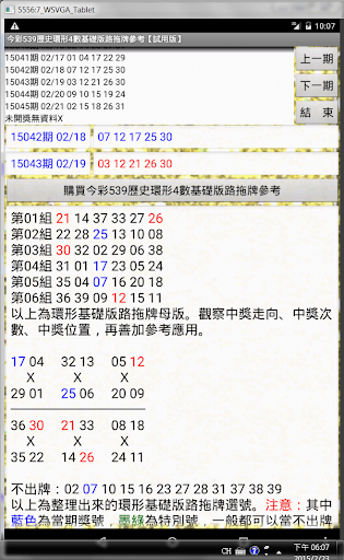 免費玩54今彩539歷史環形4數基礎版路拖牌參考【試用版】 App