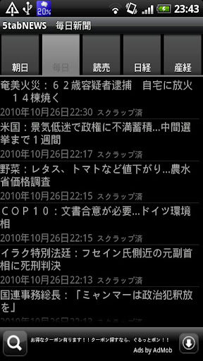 各種ニュースサイトの情報を閲覧できるツールです。利用者の意思(判断及び操作)により、私的使用目的で端末にスクラップ保存を行うことが可能です。また、スクラップは、端末の内部記録装置に保存されますので、オフライン状態でも閲覧することが可能です。