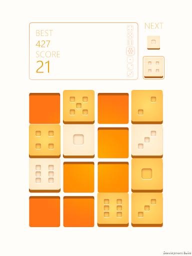 7Pips is a little less casual than those games, this game may need a little simple math (actually there is a in-game help to smooth things out), and plenty of strategic placement planning! Place dice on board, same color adds, different colors subtract, form dice faces with 7Pips to score. Fill up the board and it's game over, last long and score high!