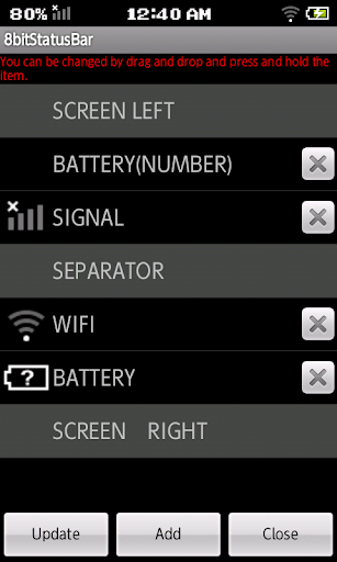 For example, the application to be displayed in the status bar battery level, which are always shown on the left, you can move right corner by using this app.