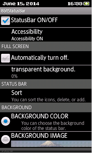 Full screen time can be selected the transparency of the background and remain on the status bar