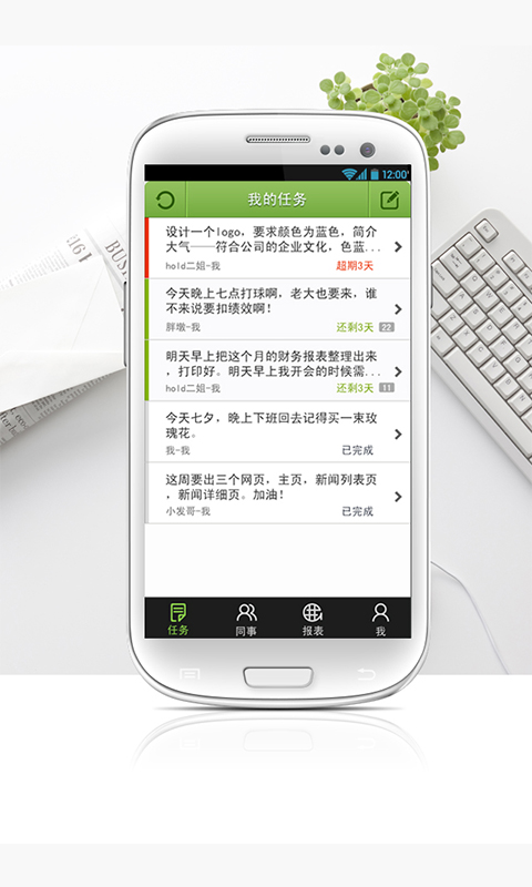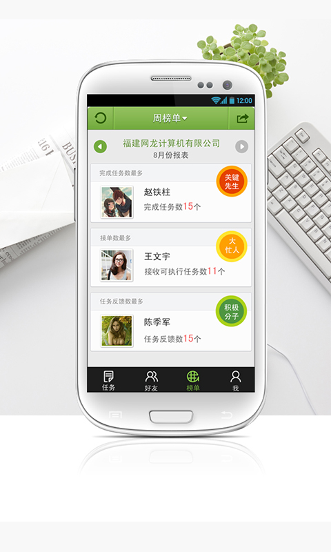 支持通讯录邀请同事组建团队,与同事互发任务,快速协作,另有周榜单、月榜单,和谐的竞争更有分享互动的乐趣。