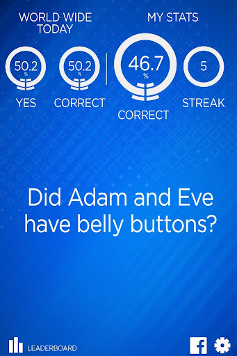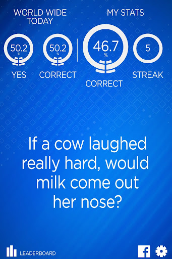 So what makes an answer "correct"? Majority rule of course. All user answers are tabulated and if more users answer Yes, then the correct answer is Yes. If more users answer No, then the correct answer is No. This is your way to make a difference in the world. Your voice will be heard, metaphorically speaking, since this app has no voice functionality.