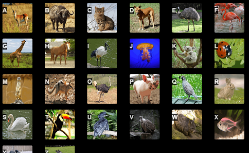 A to Z Animals has 100s of animals photos and sounds. Presented in alphabetical gallery to swipe through many animals for each letter of the alphabet