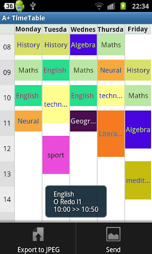• Share your timetable with your friends(send your schedule via bluetooth or email).'