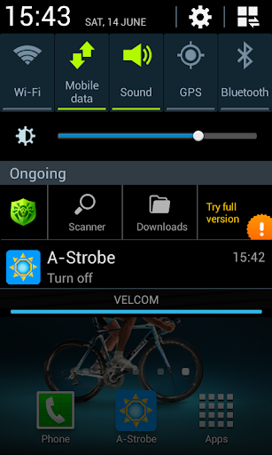 Switch on / off by pressing the icon. Regulated by volume buttons.