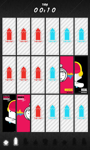빨간 카드와 파란 카드를 터치하여 뒤집어서 하나의 이미지로 완성하는 게임입니다