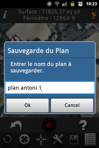 Le calcul de la surface est effectué et affiché à chaque point saisi. Le résultat peut être indiqué en m2, square feet, square yard, are, hectare.
