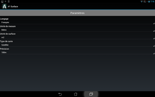 A2 est une application dédiée à la mesure de surface (superficie) terrestre, de périmètre et de distance.