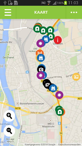 • op infoborden staan QR-codes die verwijzen naar filmpjes met achtergrondinfo. Makkelijk te scannen met de QR-scanner van de app.