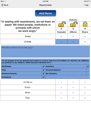 Your sponsor may want you to write out (with pen and paper) your 4th step. If that is the case, you may still utilize the app to collect your inventory information, then after printing it out, copy it over by hand.