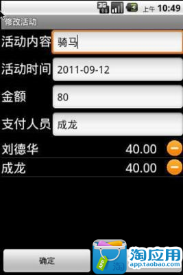 AA记账是一个适合于各种AA制消费活动的记账软件。系统通过项目,把多次相关的活动组织在一起,由一个人(项目会计)负责记录消费明细,在项目结束时和大家统一结算。比如:您和朋友要组织一次旅游,每天都需要发生很多消费。这样,您就可以把这次旅游作为一个项目,记录本次旅游从开始到结束发生的每次消费,在旅游结束时,把消费明细发给参与的成员,和大家结算费用即可。本软件也支持AB制消费方式的记账。