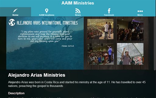 We pray that this mobile app will help you stay connected more than ever with our ministry's journeys. Through this app you will be able to be posted on everything the Lord is doing with AAIM around the world.
