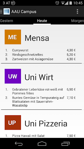 Speisepläne - Essensangebote rund um den Campus auf einen Blick