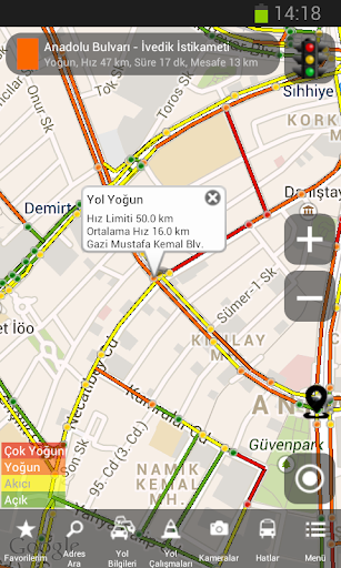 Ankara Büyükşehir Belediyesi EGO Genel Müdürlüğünün hazırladığı Ankara Trafik Yoğunluğu Uygulamasında Anayol, Bulvar, Cadde ve Sokakların anlık trafik yoğunluğu izlenebilmekte ve bir çok noktada kameraların canlı olarak izlenmesi sağlanmaktadır.
