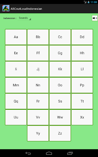 Anak mendengarkan suara dari setiap alfabet seperti yang dipilih. Suara huruf yang dimainkan keras berulang-ulang. Mereka dapat diatur untuk nama huruf atau suara fonetik mereka. Suara dapat di Bahasa Inggris US atau Bahasa Indonesia.