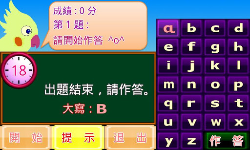 七、小寫猜大寫:隨機列出小寫,請玩家回答大寫的測驗。