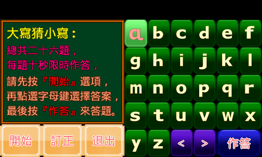 六、大寫猜小寫:隨機列出大寫,請玩家回答小寫的測驗。