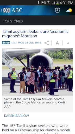 The free ABC app for Android smartphones offers you independent content, whenever and wherever you want it. Watch the live stream of ABC News 24 or listen to a great selection of ABC Radio streams and podcasts while reading the latest news stories from the Australian Broadcasting Corporation.