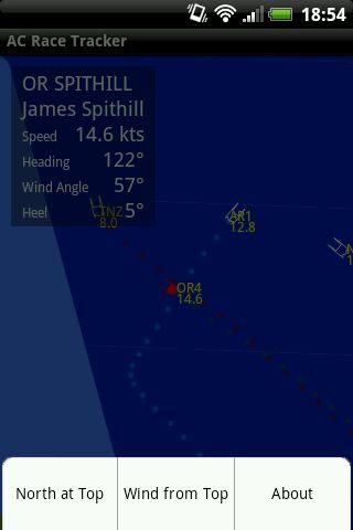 The CupExperience AC Race Tracker lets you follow the America's Cup World Series regattas in real time using the same LiveLine data that drives the television graphics and the umpire consoles. Zoom out to see the entire race course or get a close up of tactical situations. The Race Committee "chatter" feed appears on your screen - the same messages sent to the race boats during the action. Focus on any boat and see their speed over ground, heading, angle from the wind and angle of heel. All in real time. Choose the display with North at the top or "wind from the top" of the display, or rotate it to any angle you choose. "Ladder lines" spaced 100 m apart show you distance to the marks and distance between the boats. Whether you're watching from on shore, on the water or at your desk, the CupExperience AC Race Tracker lets you follow all the action - match races, fleet races and AC 500 speed trials.
