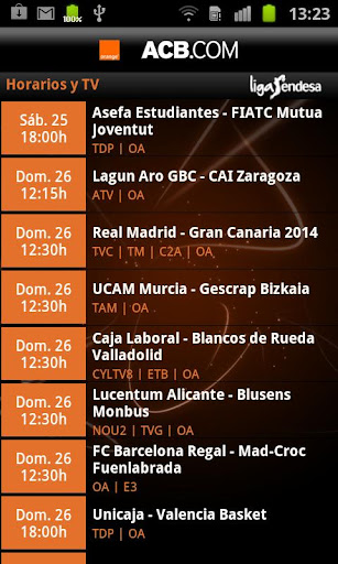 Con la aplicación ACB.COM (powered by Orange), podrás seguir en directo todos los encuentros mediante la Jornada Virtual, especialmente preparada para no perderte detalle de cada canasta y estadística, así como estar siempre al día de los resultados y la clasificación.