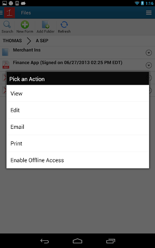 4. Create, Search, View, Edit, Email, Print forms from you mobile device