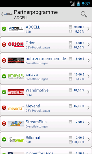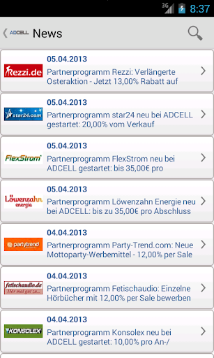 Neben den Statistiken bietet die App den Affiliates einen Überblick über Advertiser und Merchants des Affiliate Netzwerkes ADCELL sowie einen durch eine Anmeldung zu den Partnerprogrammen einfachen Einstieg ins Affiliate-Marketing.