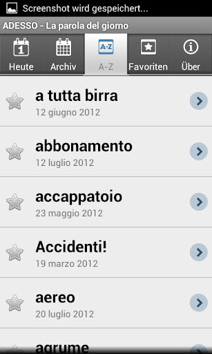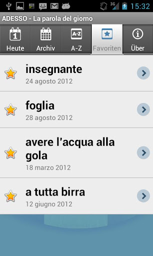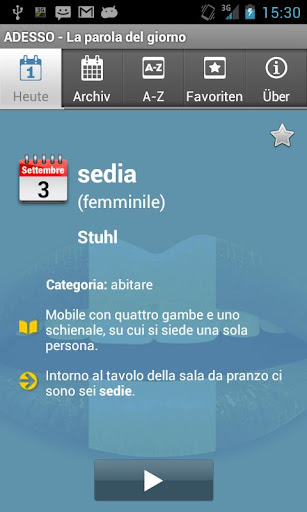 Erweitern und verbessern Sie Ihren Italienischwortschatz mit einer neuen Vokabel pro Tag. Unsere App enthält: eine Erklärung der Vokabel, das Wortfeld, zu dem die Vokabel gehört, einen Beispielsatz und eine Audiodatei.