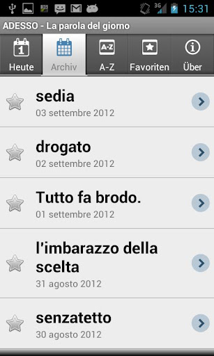 Jeden Tag erhalten Sie eine neue Vokabel, die zum Alltag (Küche, Haus, Kleidung) oder zu einem spezielleren Themengebiet (Wirtschaft, Umwelt, Recht) gehört, eine umgangssprachliche Wendung oder ein Sprichwort. Außerdem können Sie Ihren Wortschatz chronologisch und alphabetisch einordnen.