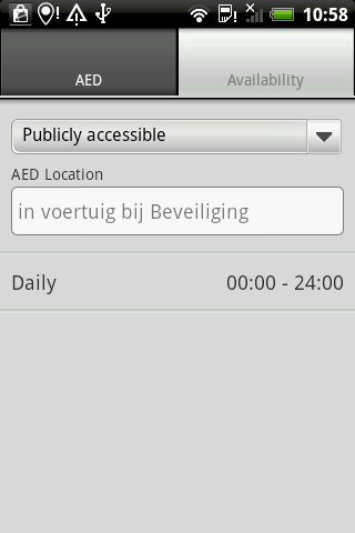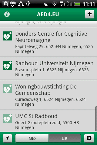 At present only the Dutch AEDs which have been signed up are presented. In the near future other countries will also become available. Watch for news on www.aed4.us or www.aed4.eu