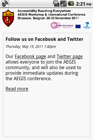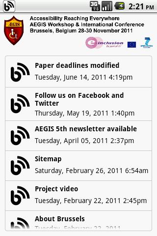 2011 - This AEGIS App will keep you informed on the AEGIS Workshop and International Conference, that takes place in Brussels, Belgium on 28-30 November 2011.