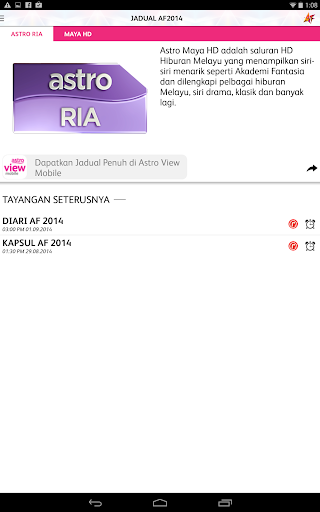 • Tetapkan peringatan untuk tidak ketinggalan menonton episod AF2014.