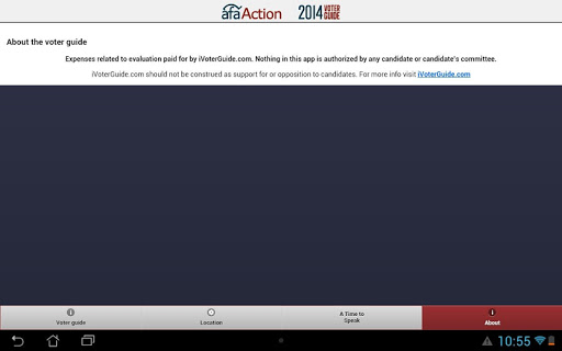 The AFA Action Voter Guide (AFAAction.net) is the most distinctive and comprehensive presentation of information on candidates available at one location for values voters. Every individual voter can visit type in his or her address and be presented with their candidates and information that will assist the voter in determining who will best represent their Christian values if elected to public office.