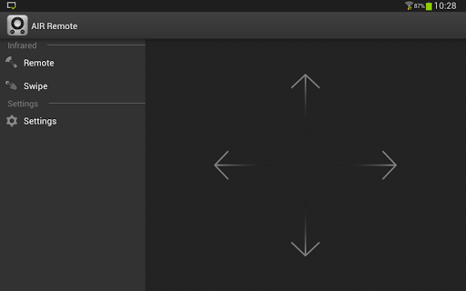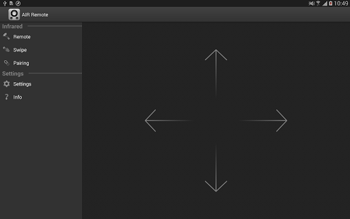 On the sidebar you will find the choice between the original remote and the swipe view. After selecting the swipe screen, you can activate the directions by swiping into a direction. Tapping once represents the confirm button and tapping twice will trigger the menu button.